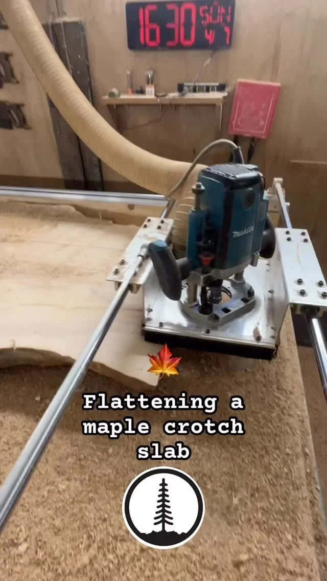 ๐ Maple crotch slab on the Flattening Mill!